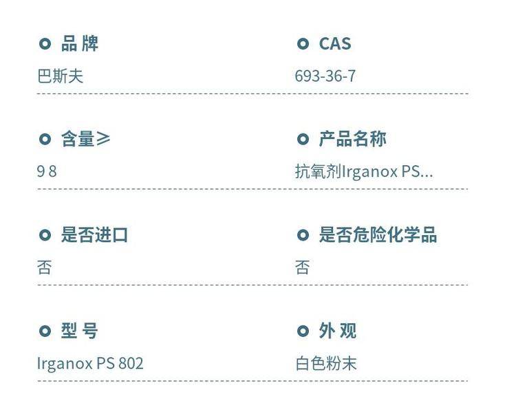 巴斯夫抗氧剂Irganox PS 802 硫代酯类抗氧化剂 橡塑稳定剂